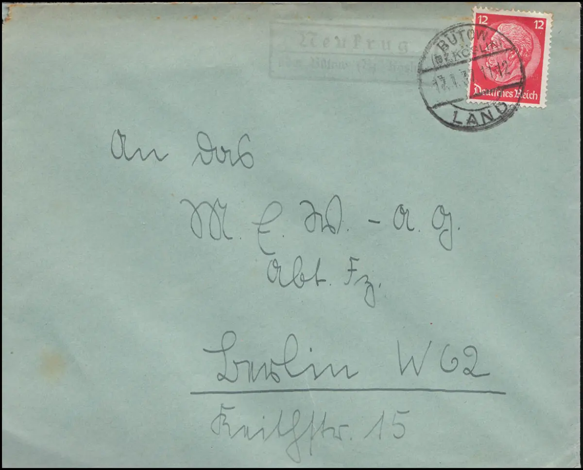 Landpost Neukrug über Bütow Bezirk Köslin 17.1.1937