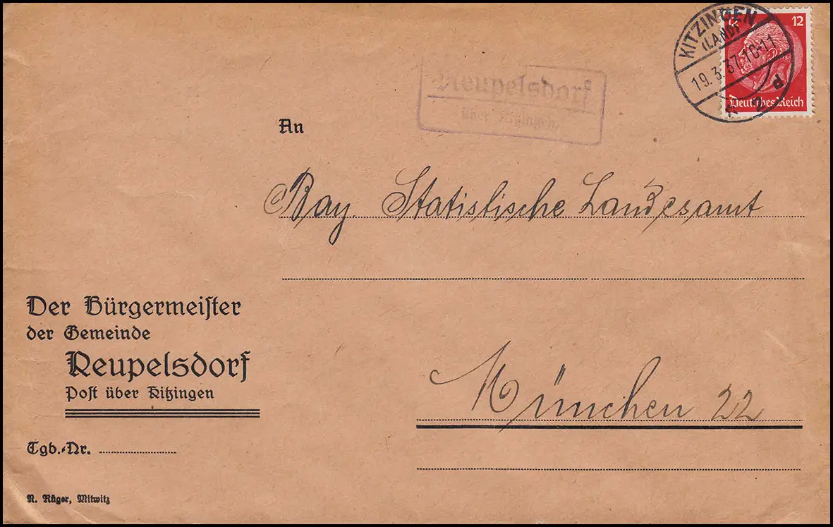 Landpost Reupelsdorf sur KITZINGEN 19.3.2007 sur lettre Office statistique national