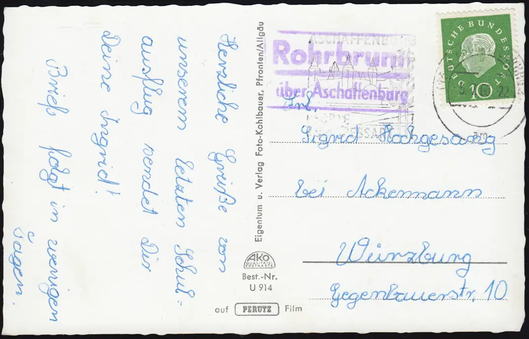 Landpost Rohrbrunn sur ASCHAFENBURG 5.7.1960 sur le château de Mespelbruinn