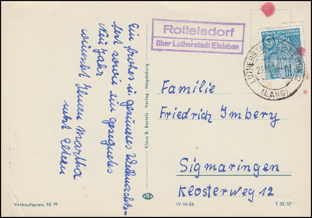 Landpost Rottelsdorf sur LUTHERSTADT EISLEBEN 23.12.56, AK Weihnachen / Nouvel An