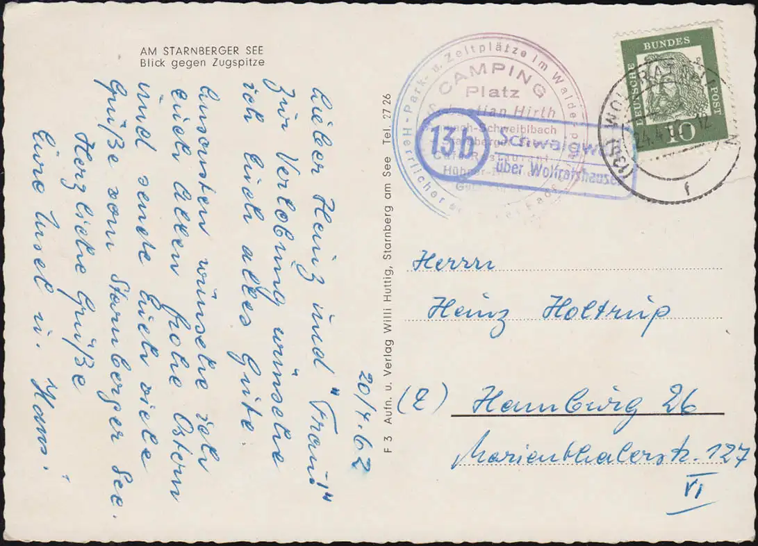 Landpost Schwaigwall sur WOLFRATSHAUSEN 24.4.1962 sur AK Am Starnberger See