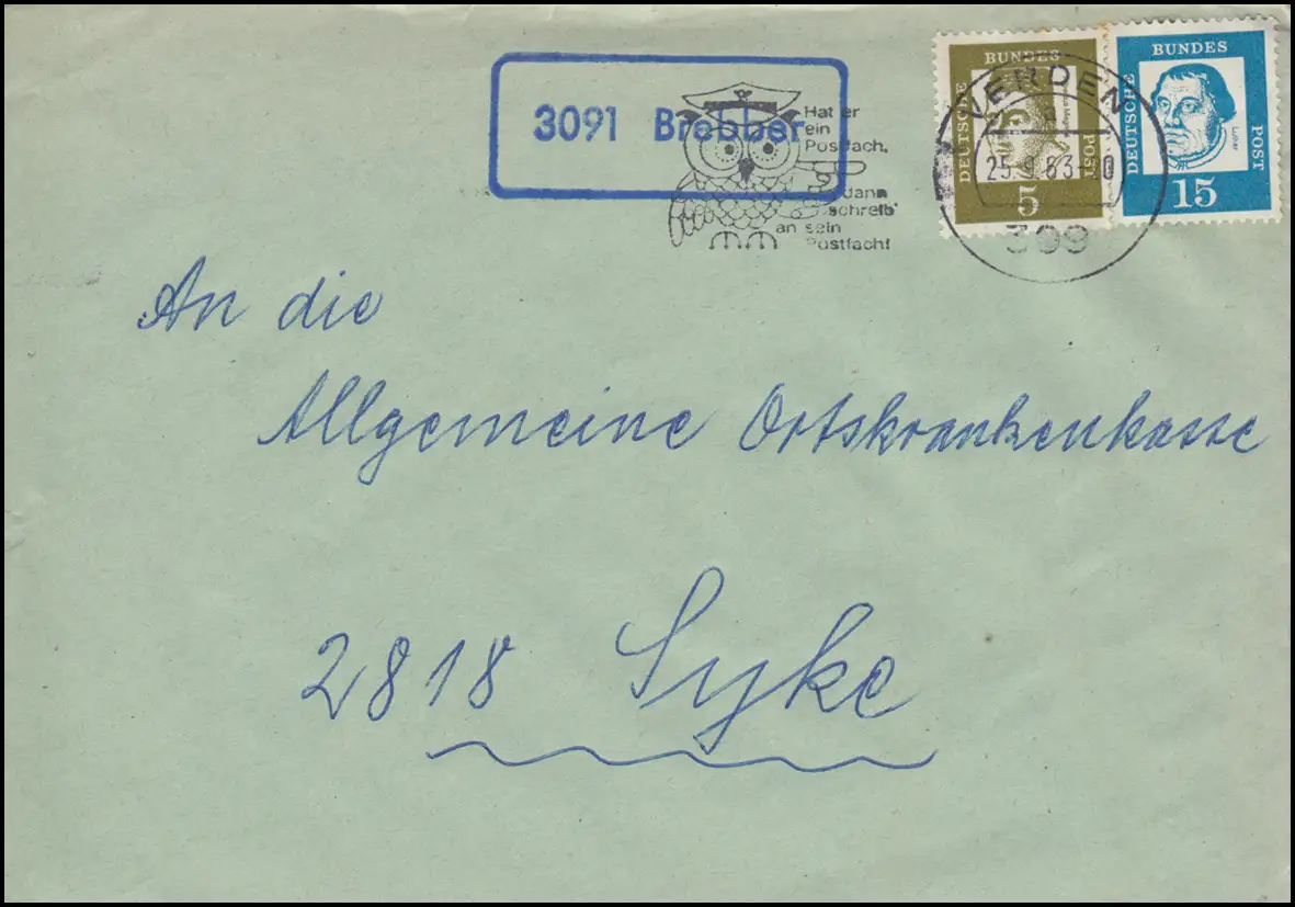 Temple de la poste de campagne 3091 Brebber sur lettre VERDE 25.9.1963