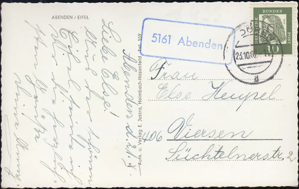 Le temple de la poste de campagne 5161 soirées sur AK approprié, DUREN 23.10.1962 à Viersen