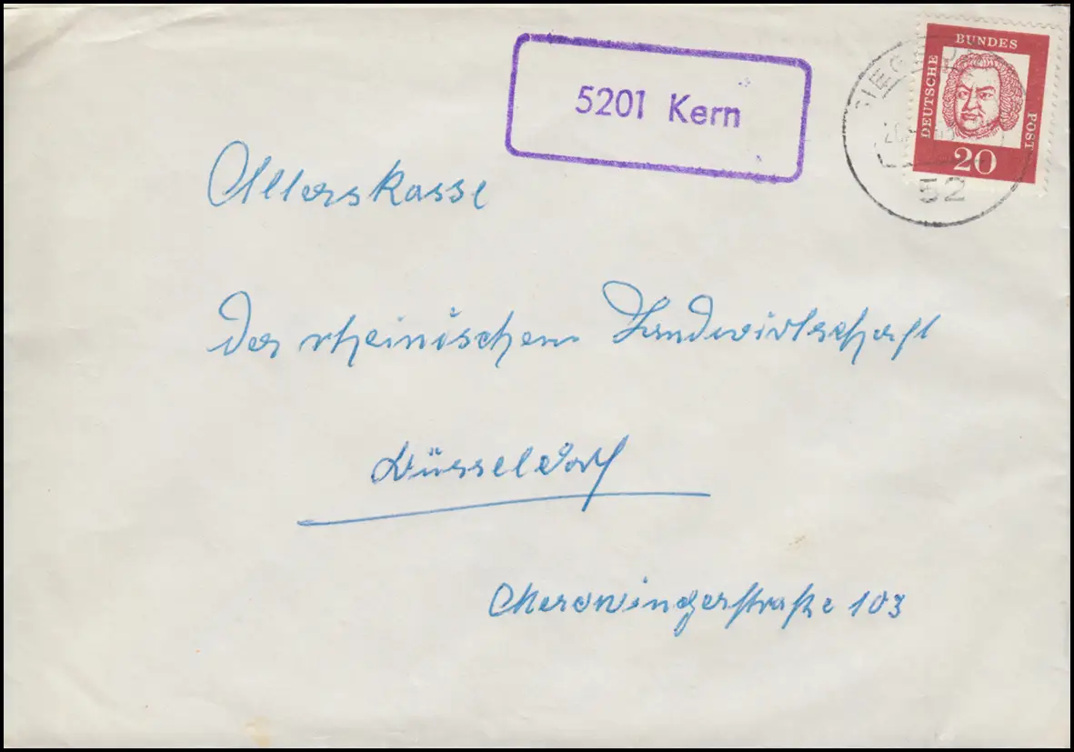 Temple de la poste de campagne 5201 Kern sur lettre SIEBOURG 20.8.1963