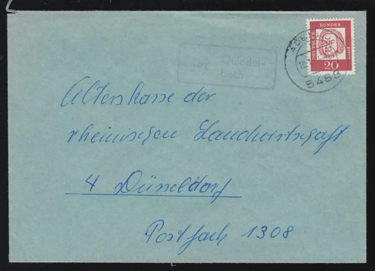 Le temple de Landpost 5489 Quiddelbach sur lettre ADENAU 10.1.1964 à Düsseldorf