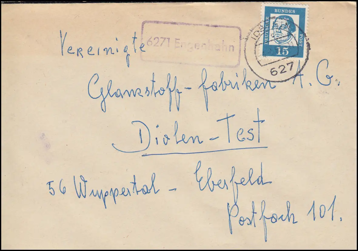 Temple de Landpost 6271 Hahn sur l'impression IDSTEIN 1963 vers Wuppertal