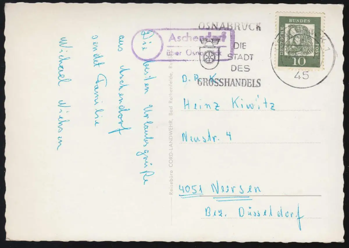 Temple de Landpost Aschendorf sur OSNABRÜCK 7.6.62 sur AK Bad Rothenfelde Saline