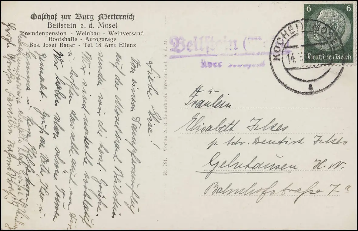 Templier de Landpost Beilstein (Mosel) via KOCHEM (MOSEL), AK Beillstein