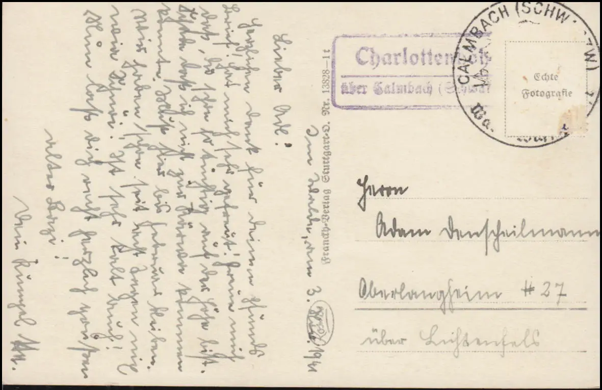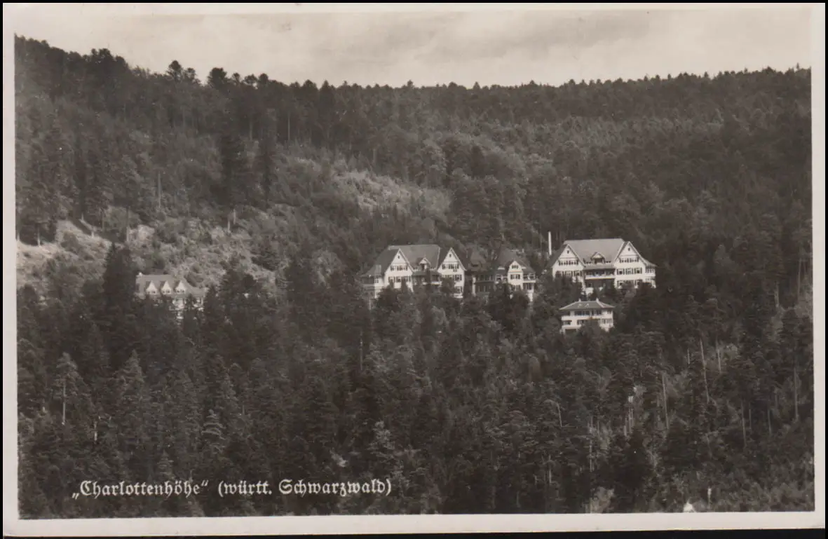 Carte visuelle: "Charlottenhöhe" (souris Schwartzwald), Tampon spécial: CALMBACH (SCHWARZWALD) Forêt Eau Air 1941 loin de la France Examen: original Référence produit: 00000000044105>Remarque: Cet article n'est disponible qu'une seule fois. Vous recevrez exactement l'article représenté.