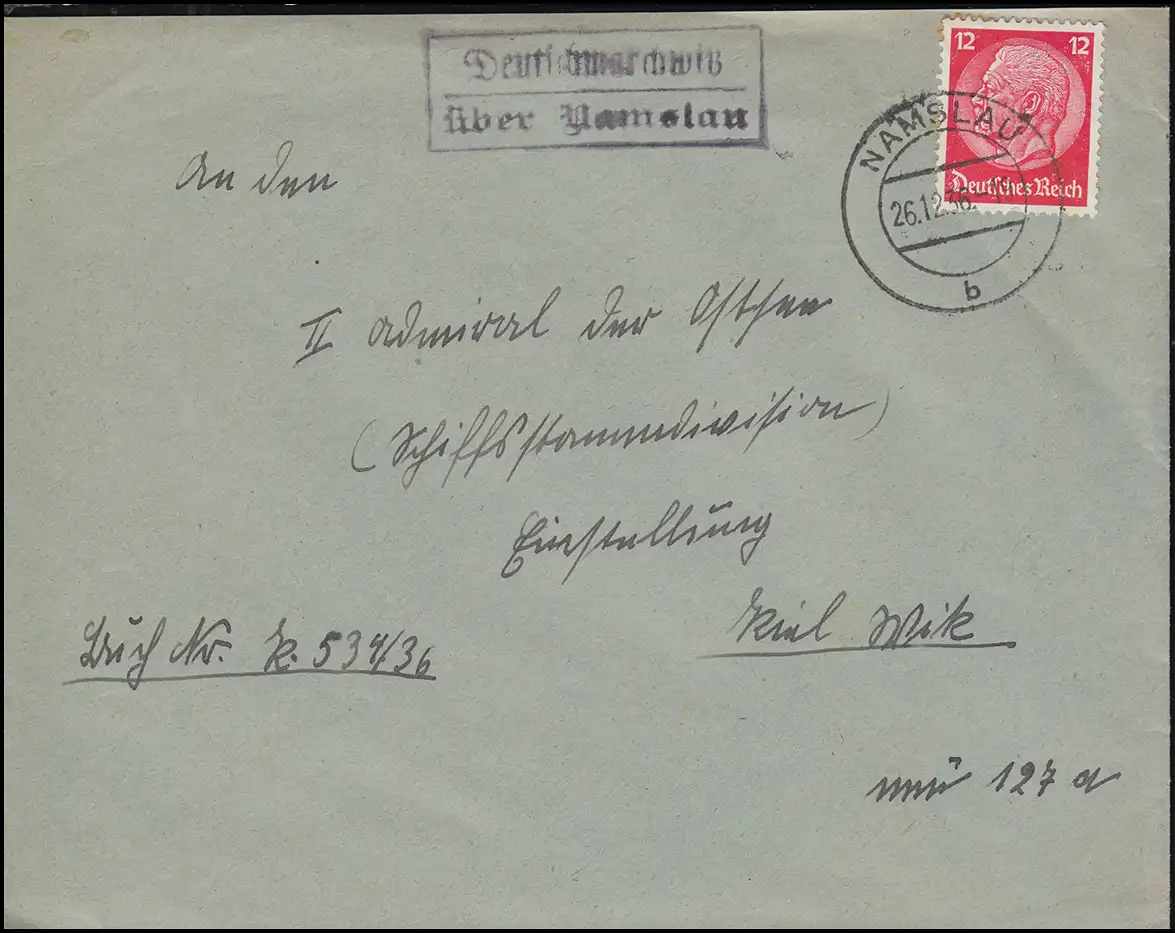 Temple de Landpost de Deutschemarchwitz sur NAMSLAU 26.1.1936 sur lettre