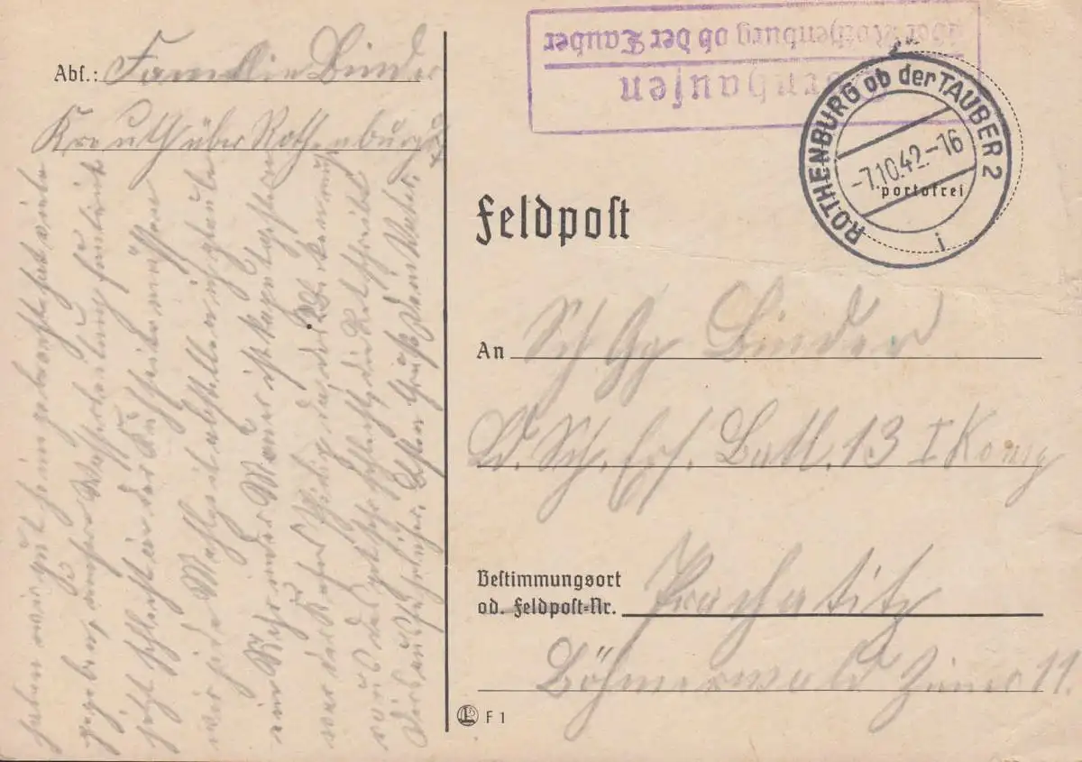 Templier de la poste de Landpost Dornhausen sur ROTHENBURG si le TAUBER 7.10.1942, sur PK