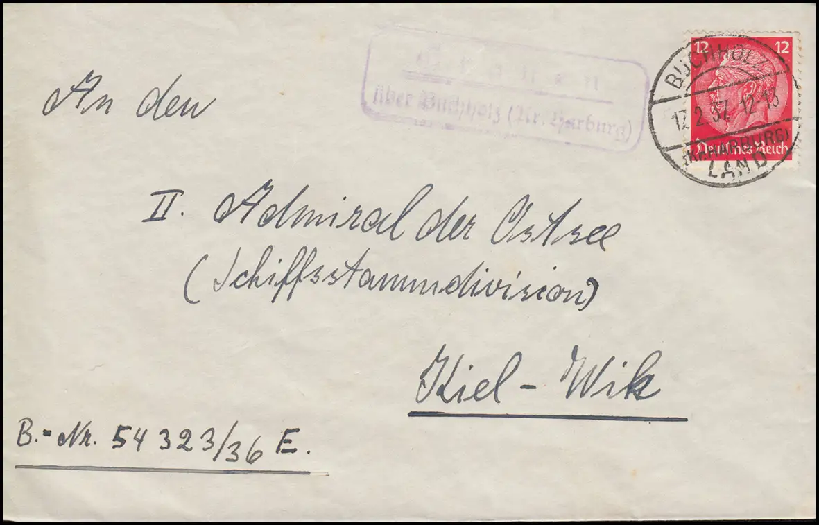 Temple de la poste de campagne Gris sur le bois de livre (Kr. Harburg) sur lettre Buchholz LAND 1937
