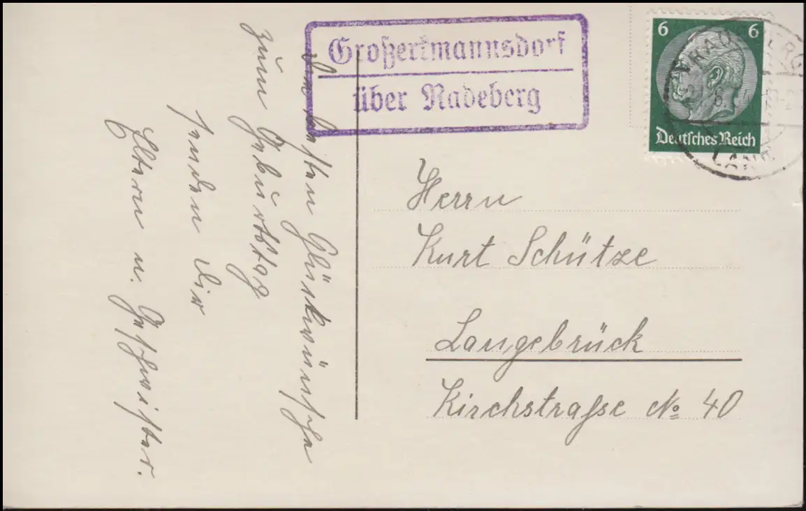 Le temple de Landpost de Grossertmannsdorf sur RADEBERG 21.6.1934 sur l'AK d'anniversaire