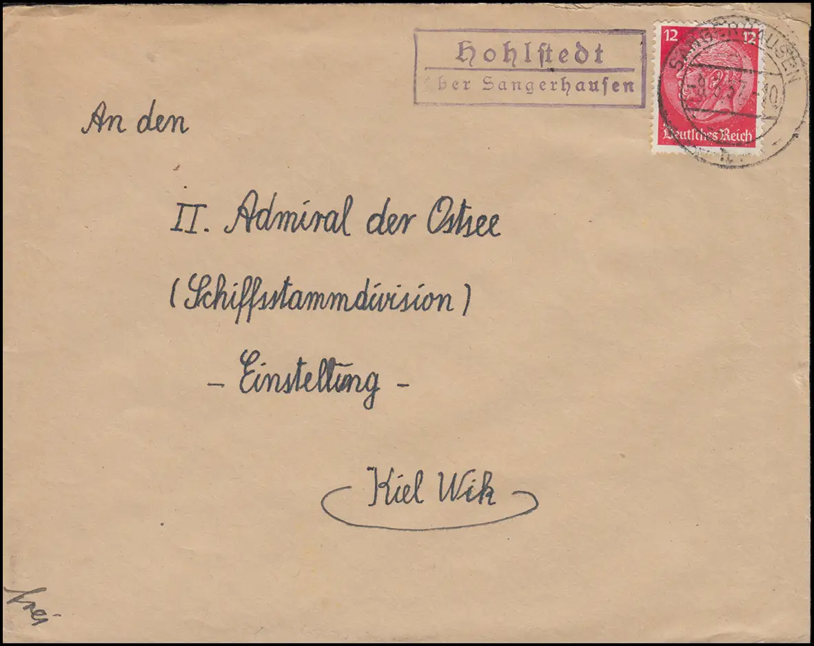 Le temple de la poste de Landpost Hohlstedt sur SANGERHAUSEN 8.3.1937 sur lettre