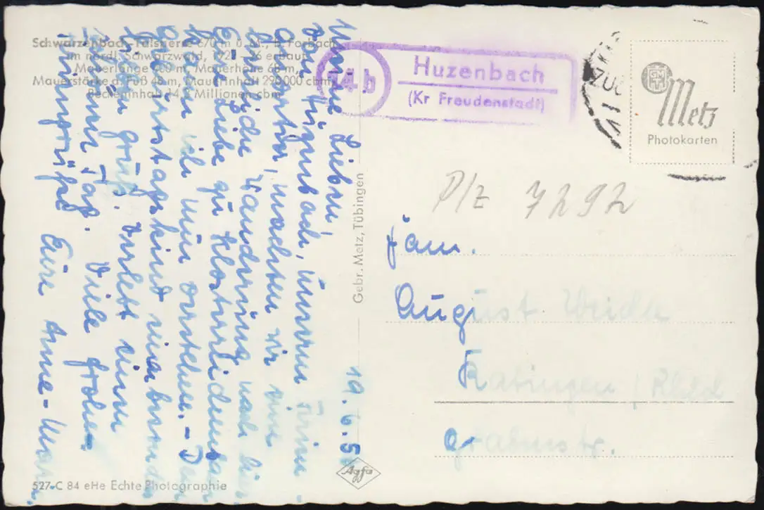 Le temple de la ville de Huzenbach (Kr. Freudenstadt) sur AK par voie ferrée 1956
