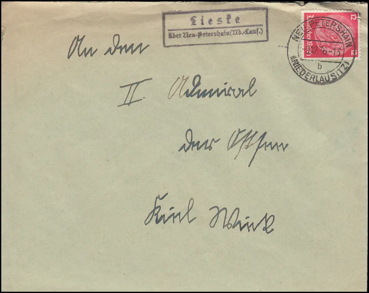 Le temple de Lieske sur la Nouvelle-Pétershain (NIEDERLAUSUTZ) 9.12.1936 sur lettre