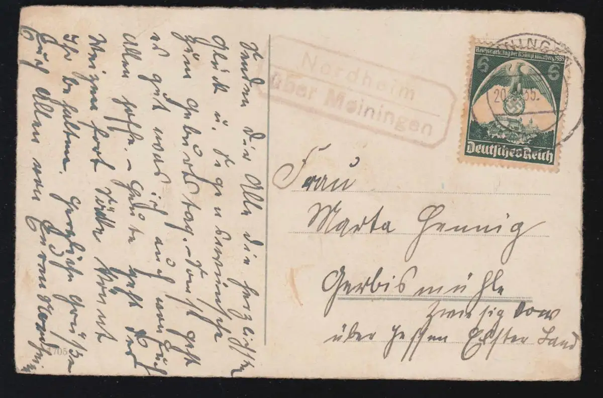 Temple de la poste de campagne Nordheim sur MEININGEN 20.9.1935 sur AK anniversaire