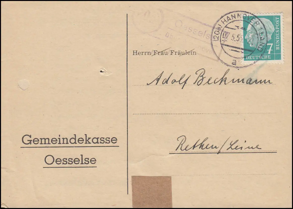 Le temple de Landpost Osselse sur HANNOVER 7.5.1955 sur l'impression après Rethen