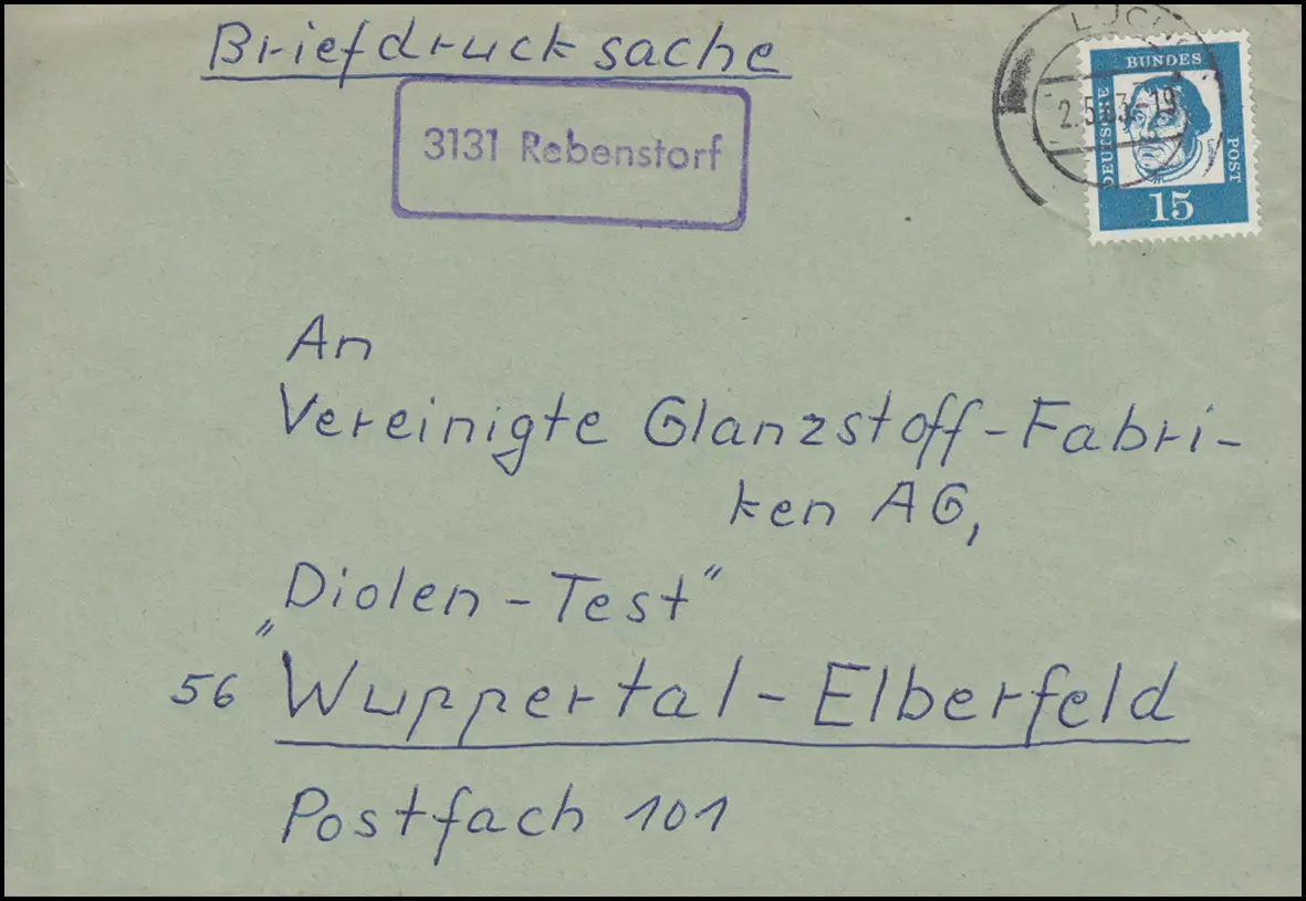 Le temple de Rebenstorf, l'impression de correspondance LÜCHOW 2.5.1963 à Wuppertal