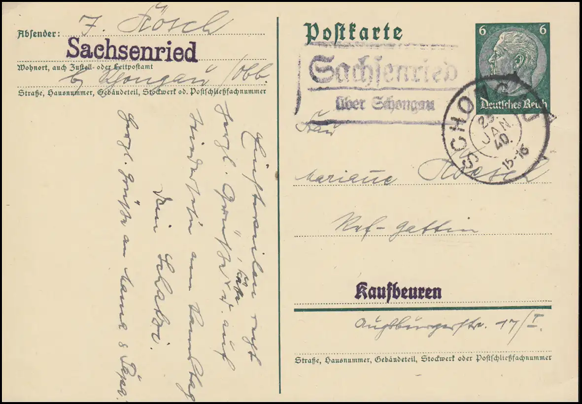 Schonggau 25.1.140, carte postale par Kaufbeuren