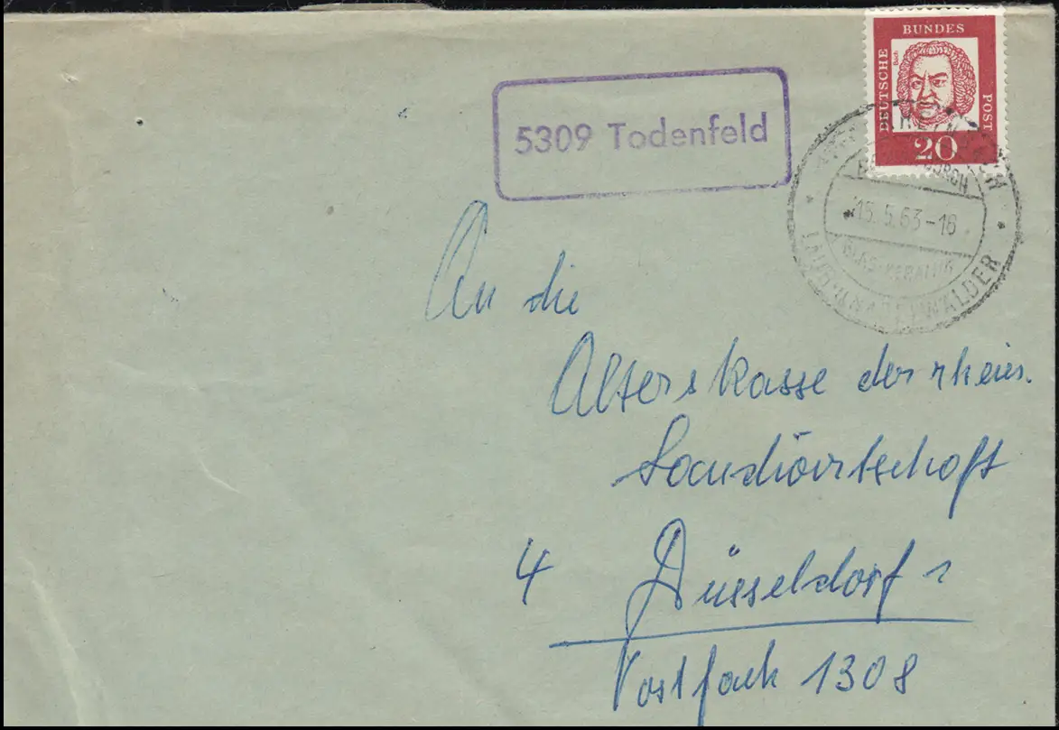 Landpost-Stempel Todenfeld Brief SSt RHEINBACH Verre et céramique vers Düsseldorf