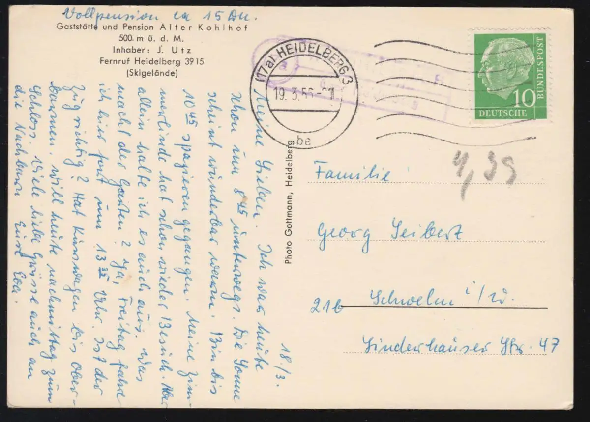 Le temple de Landpost Waldhilsbach par l'intermédiaire de HEIDELBERG 3 - 19.3.1965 sur AK Alter Kohlhof
