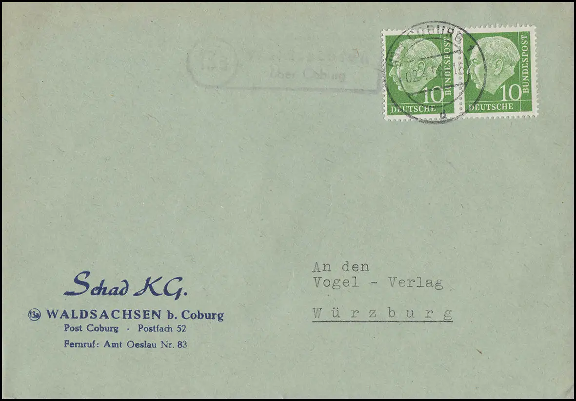 Templier de la campagne de Saxes de bois sur COBURG 2.4.58, lettre avec 183 en couple