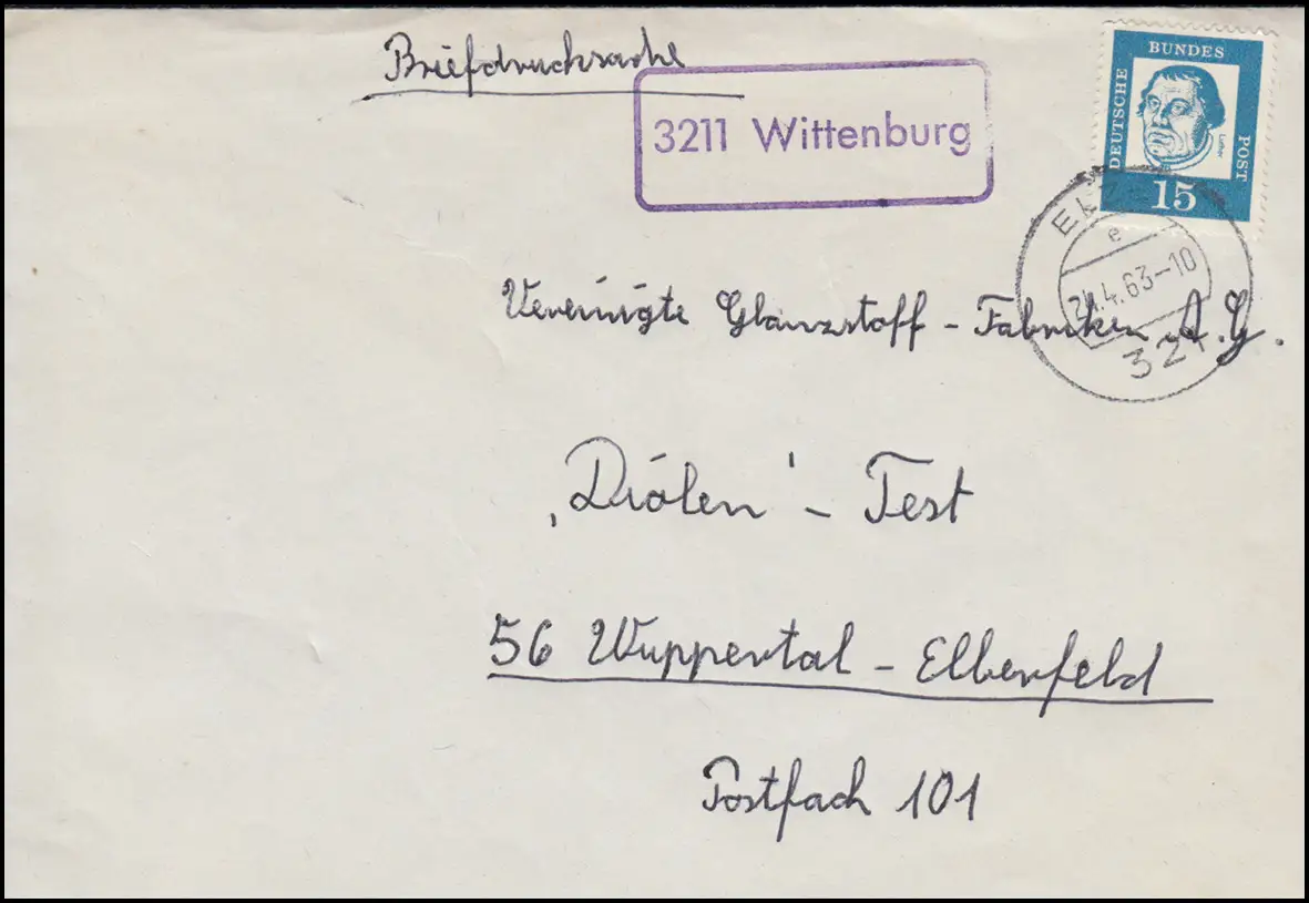 Landpost-Stempel Wittenburg Critiques de correspondance ELZE 24.4.1963 vers Wuppertal