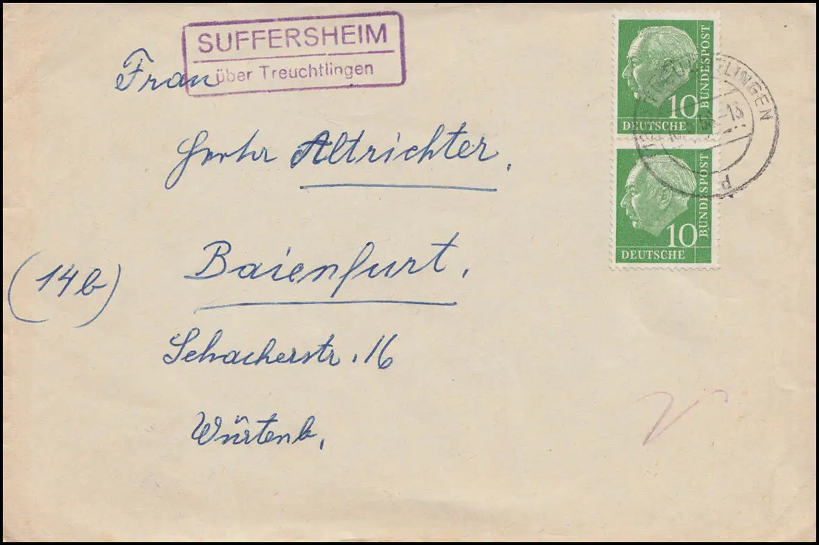 Landpost Suffersheim sur RECHTTLINGEN 1958 sur lettre à Baienfurt