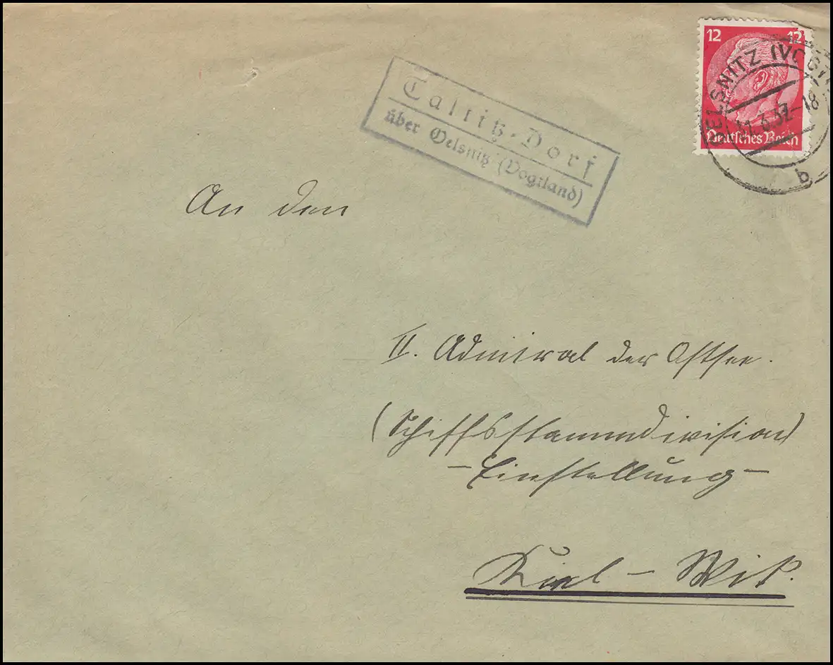 Landpost Talritz sur OELSNITZ (VOGTLAND) 31.3.1937 par télex