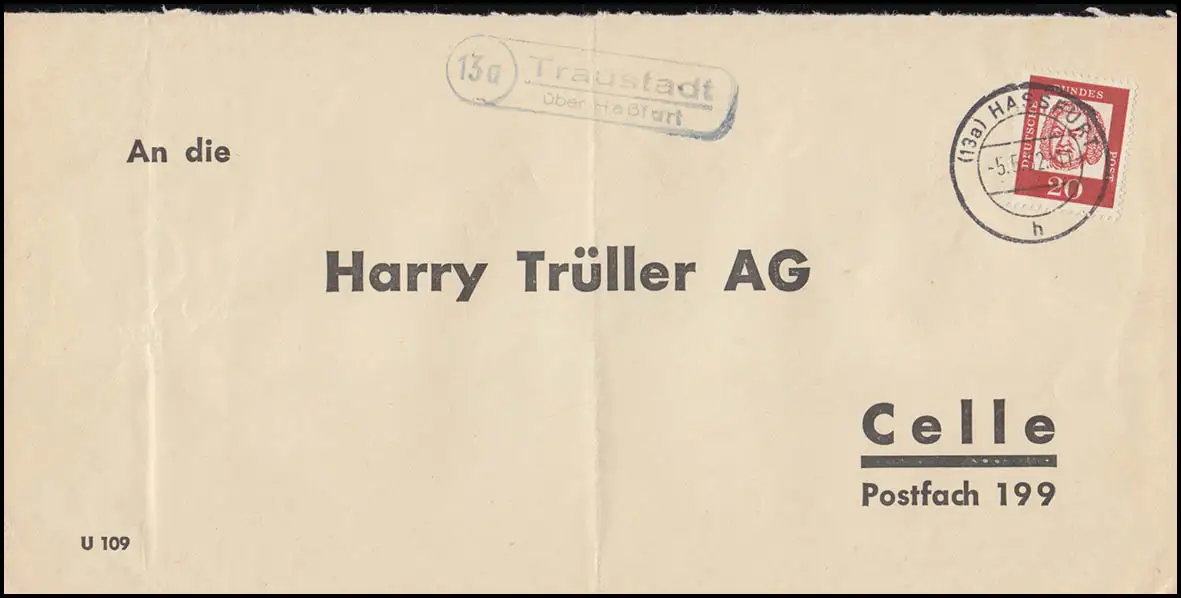 Landpost Traubstadt via HASSFURT 5.5.62 Conservation des besoins/reprise de correspondance
