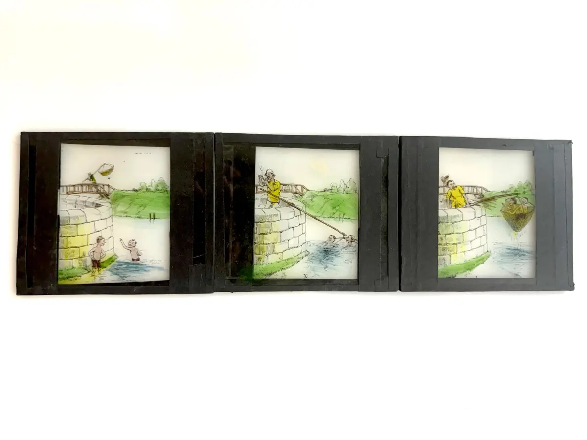 -Série "La pêche extraordinaire" 3 plaques peintes à la main.