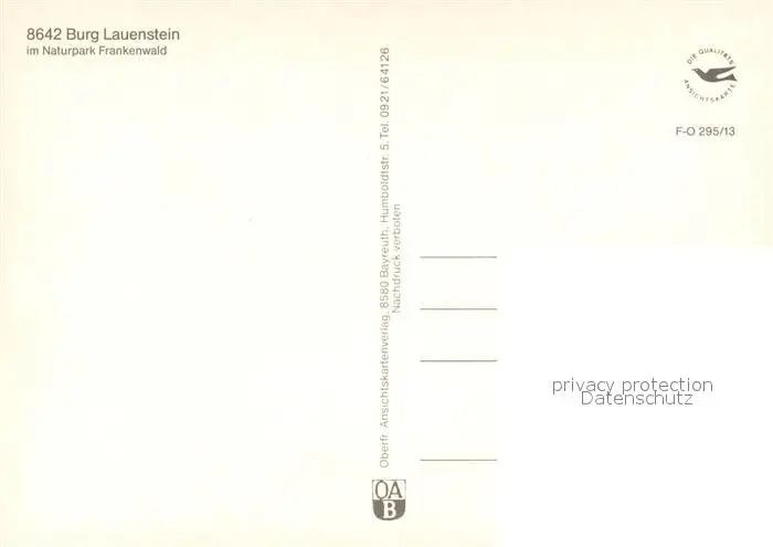 Lauenstein_Oberfranken Burg Lauenstein Lauenstein_Oberfranken postalisch nicht gelaufen nach 1965 Erhaltung siehe scans [WerneD78] WernPID7