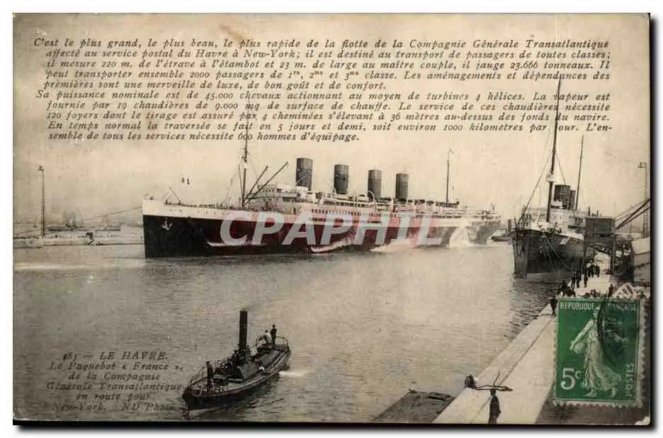 Le Havre Cartes postales Le paquebot France de la Cie generale Transatlantique en route pour New York