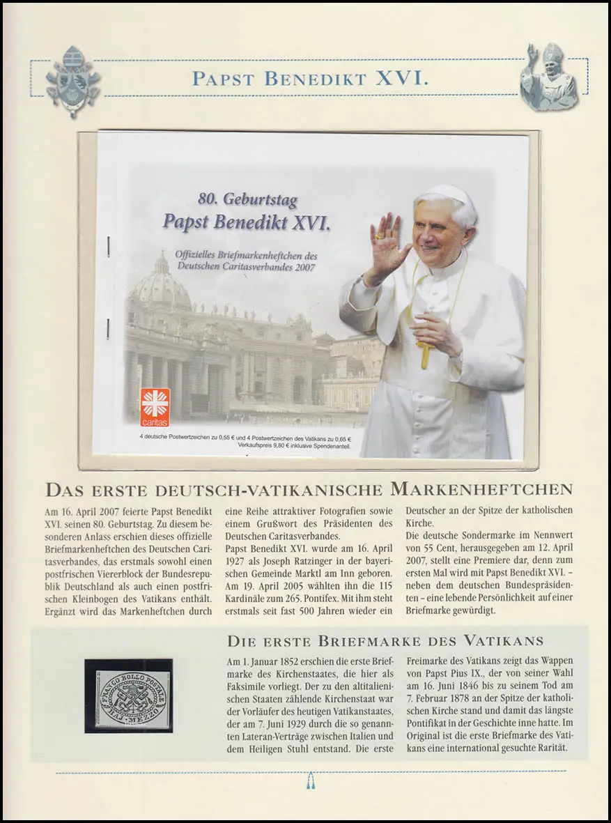 Le Pape Benoît XVI Premier cahier des marques franco-vatican 2007 **