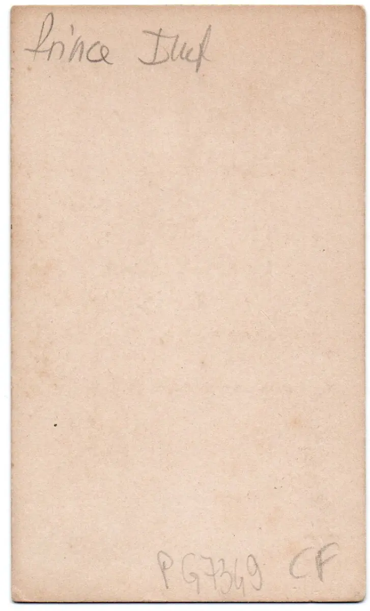 Le Prince Impérial, Eugène Louis Napoléon Bonaparte (1856–1879), fils unique de Napoléon III et de l’impératrice Eugénie, est représenté vêtu de l’uniforme de cadet qu’il portait durant sa formation à l’école militaire de Woolwich, en Angleterre, où il suivit des études d’artillerie. Cet uniforme, caractéristique des cadets britanniques de l’époque, se distinguait par une veste sombre, des épaulettes et des boutons dorés.