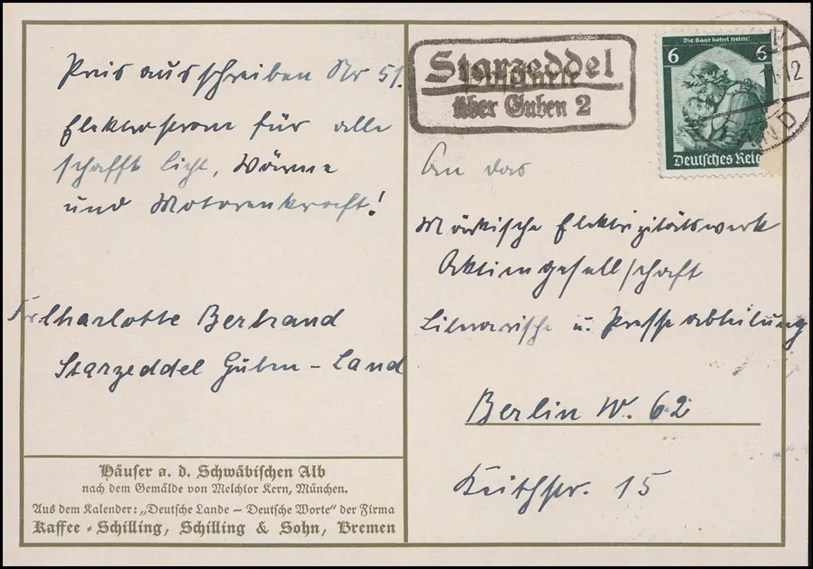 Le poste de campagne Starzeddel sur GUBEN 2 PAYS 1935 sur AK Maisons sur l'Alb Schwäbischen