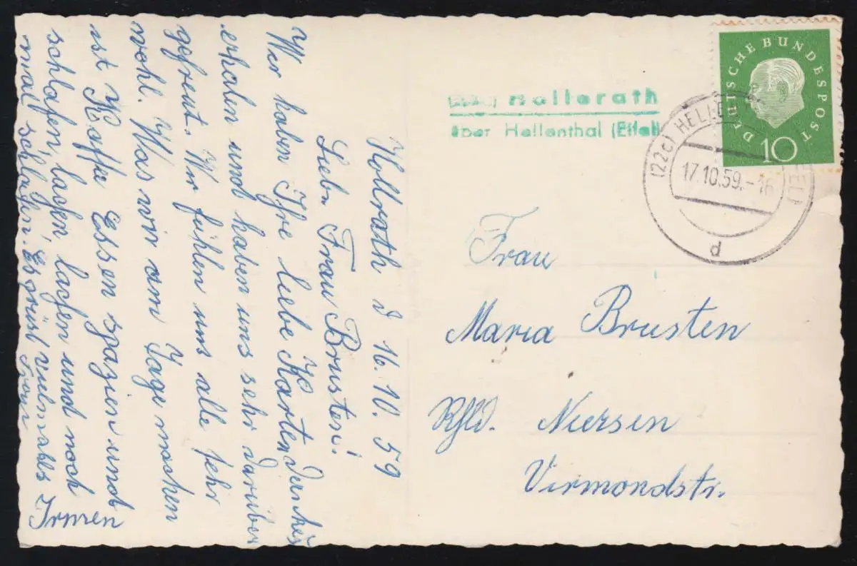 Le temple de Hollerath par l'intermédiaire de HELLETHAL (EIFEL) 17.10.1959 sur AK Entrée de la ville
