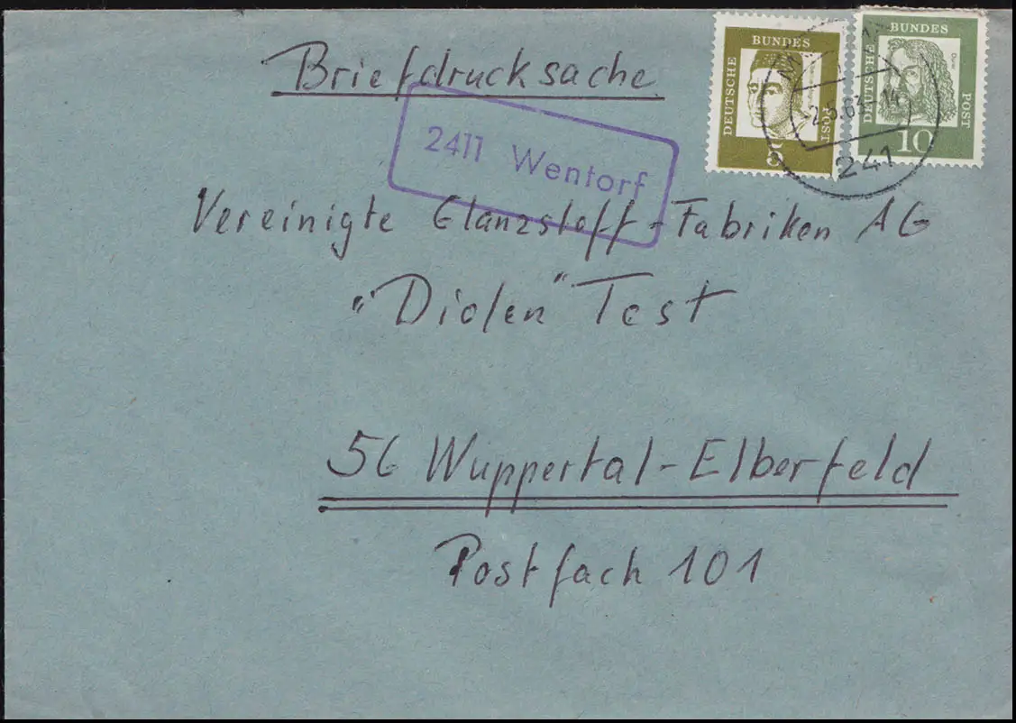 Le temple de Landpost 2411 Wentorf sur l'impression de lettres MÖLLN 2.5.1963 à Wuppertal