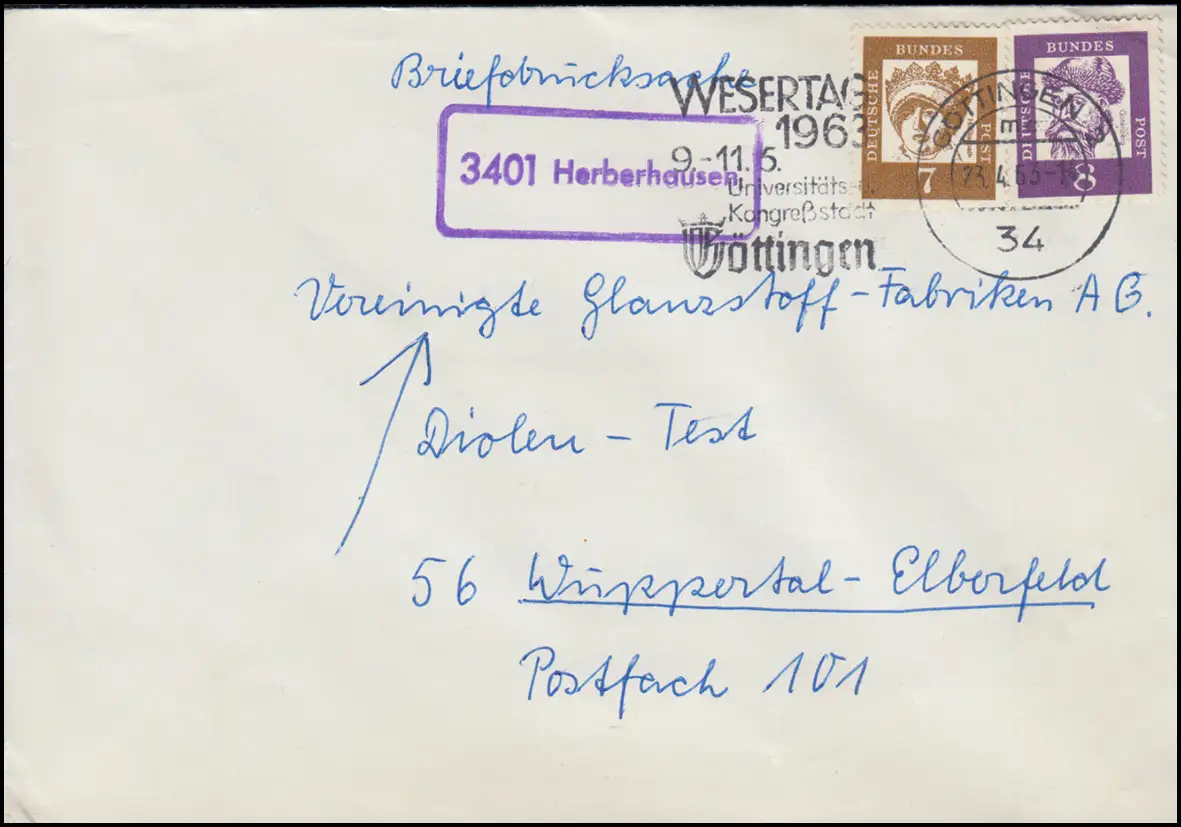 Le temple de Landpost 3401 Herbershausen sur l'impression de lettres GÖTTINGEN 23.4.1963