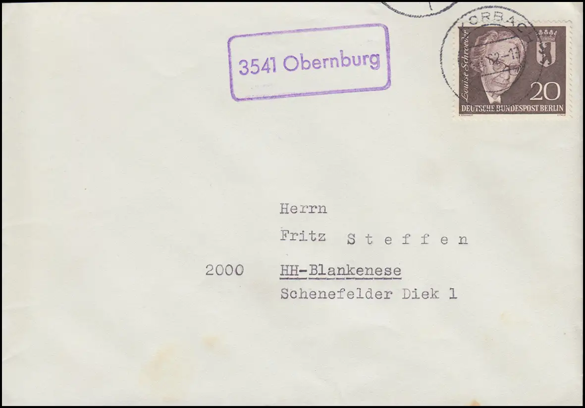 Le temple de Landpost 3541 Obernburg sur lettre avec Berlin-Frankatur KORBACH 3.8.1962