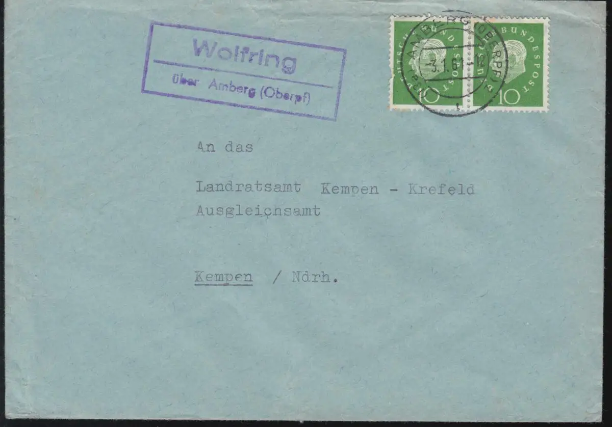 Le temple de Landpost Wolfring par l'intermédiaire d'ARNSBERG (OBERPF.) 3.1.1961 à Kempen/Niederrh.