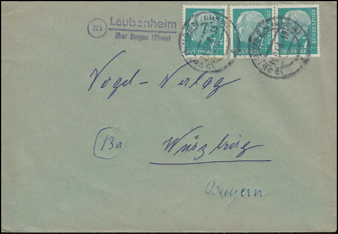 Le temple de Laubenheim sur BINGEN (RHEIN) 29.8.1956 sur lettre n. Würzburg