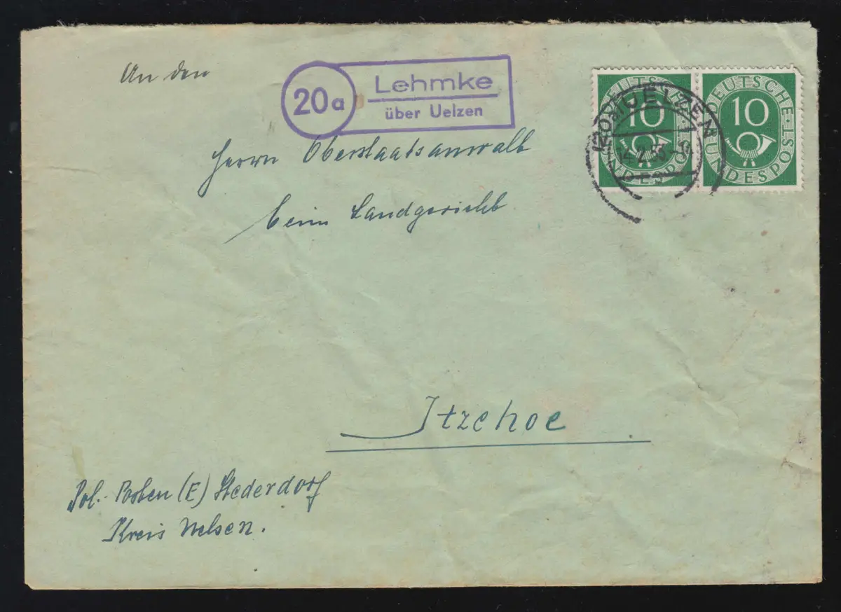 Le temple de l'Andpost sur UELZEN 14.2.1953 sur lettre à Itzehoe