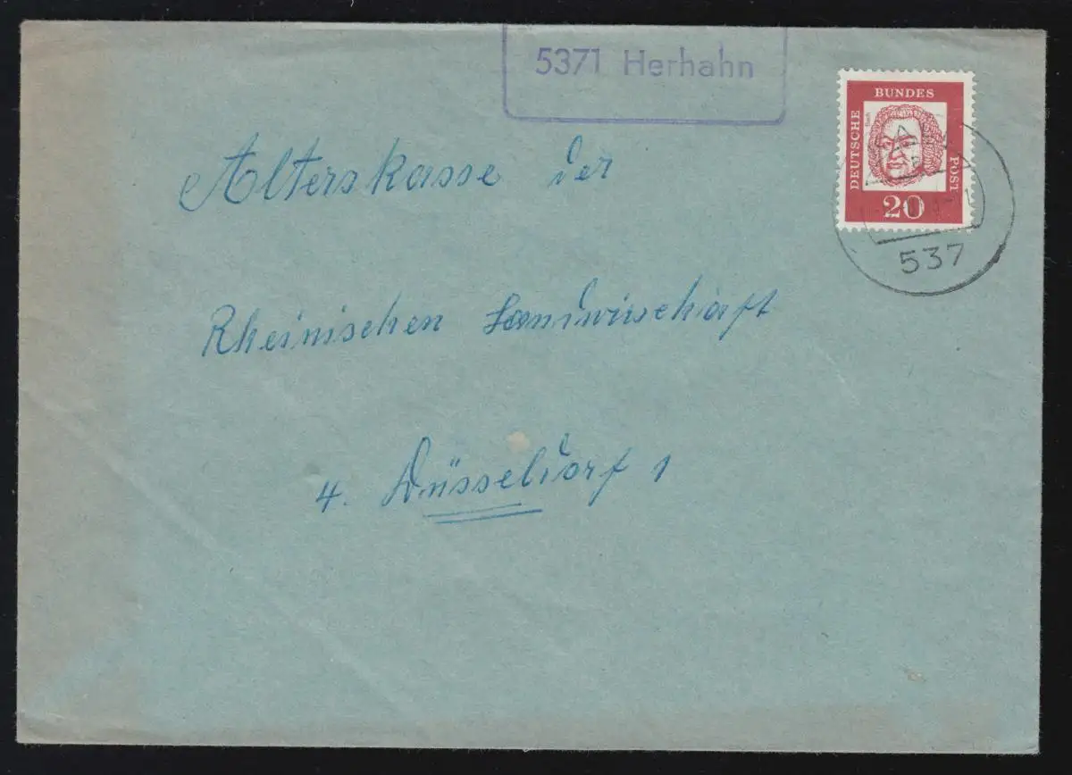 Le temple de la poste de campagne 5371 Hahn sur lettre KALL 6.8.1963 à Düssldirf