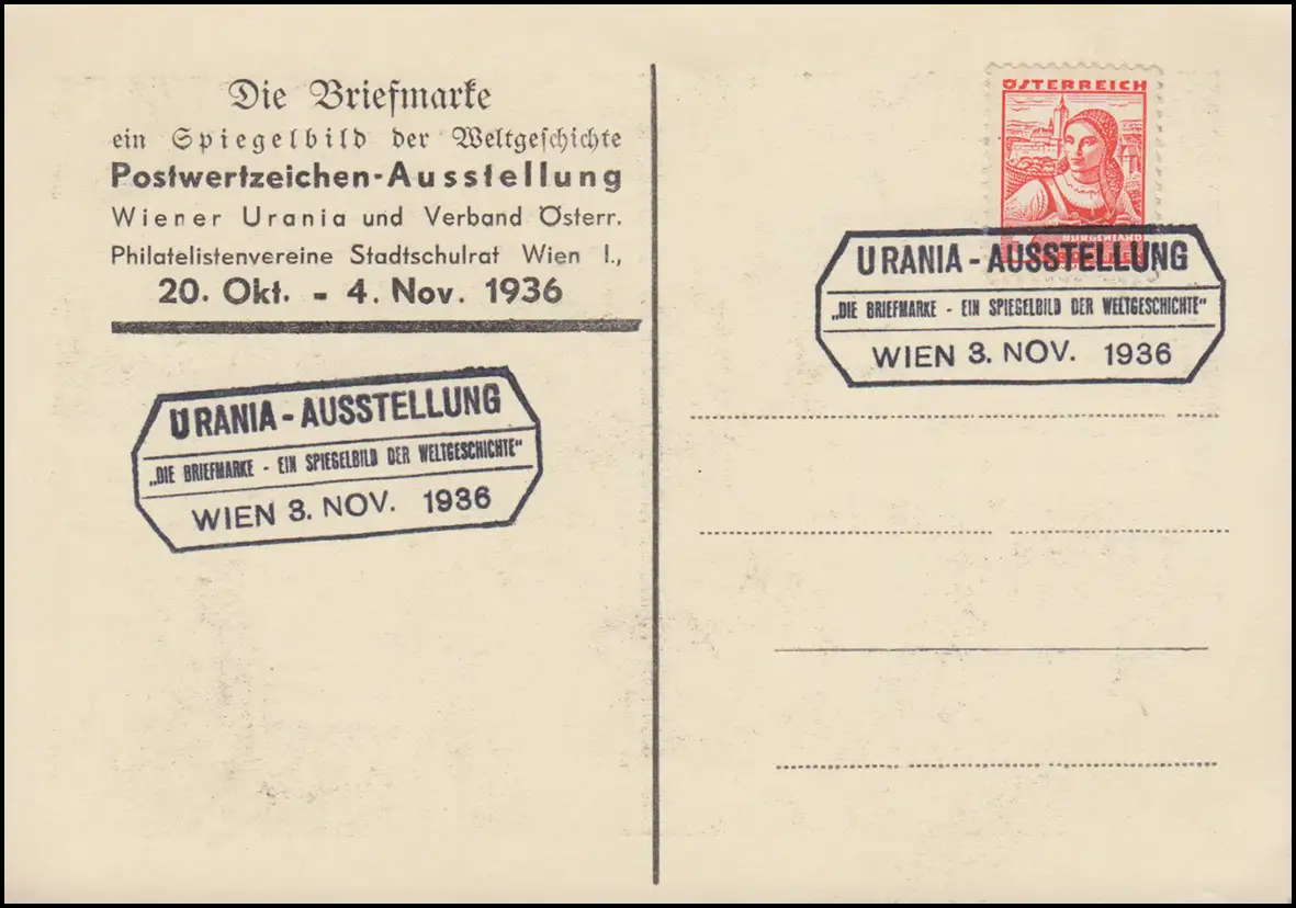 Le timbre - le reflet de l'histoire du monde AK Urania appelle! SSt WIENNE 3.11.36