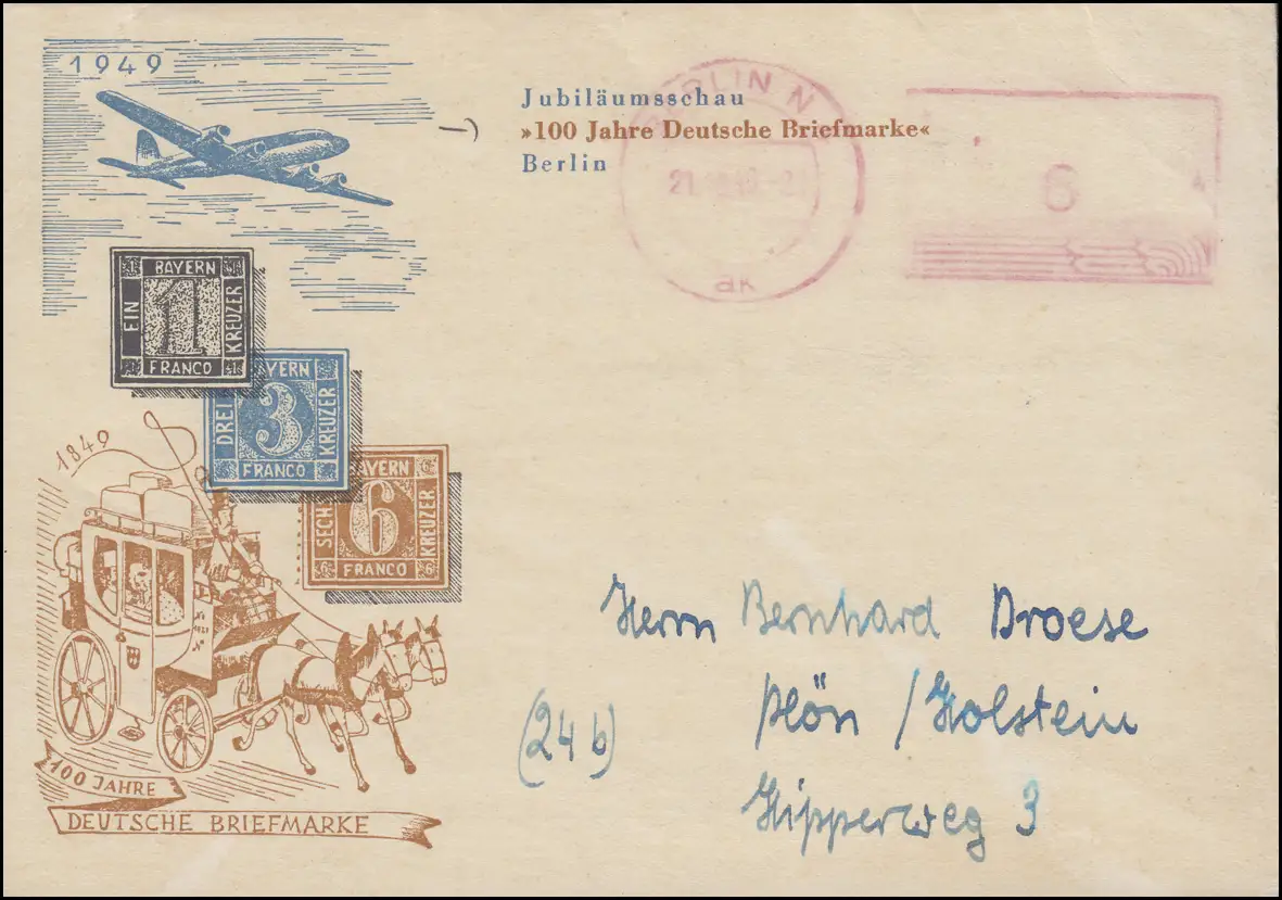 Le timbre sans expéditeur BERLIN 21.10.49 est appliqué sur les timbres allemands Bijoux-DS