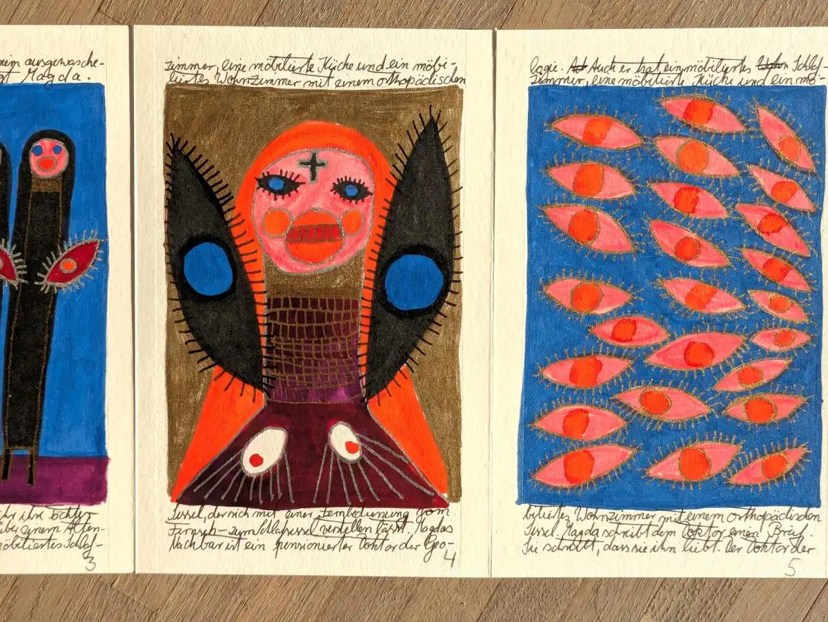 Sehr hübsches von der in Berlin lebenden Künstlerin, Schauspielerin und Autorin in einer Auflage von 8 Stück verfertigtes Künstlerbuch, wobei jedes Exemplar als per Hand erzeugtes Unikat gelten kann.