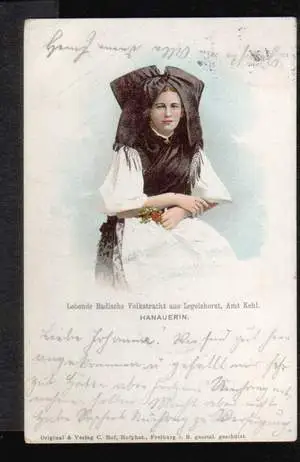 Legelshurst. Amt Kehl. Lebende badische Volkstrachten. Hanauerin - Gelaufen 1904. (NPLZ 77731).
