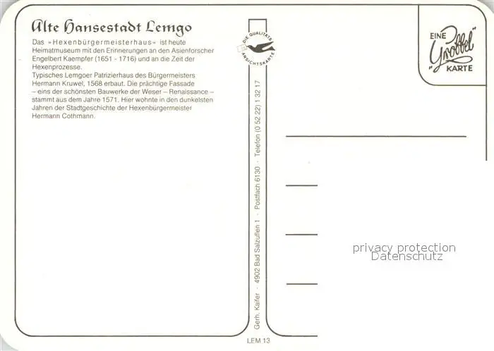 Lemgo Hexenbuergermeisterhaus Lemgo postalisch nicht gelaufen nach 1965 Erhaltung siehe scans [WerneD78] WernPID7